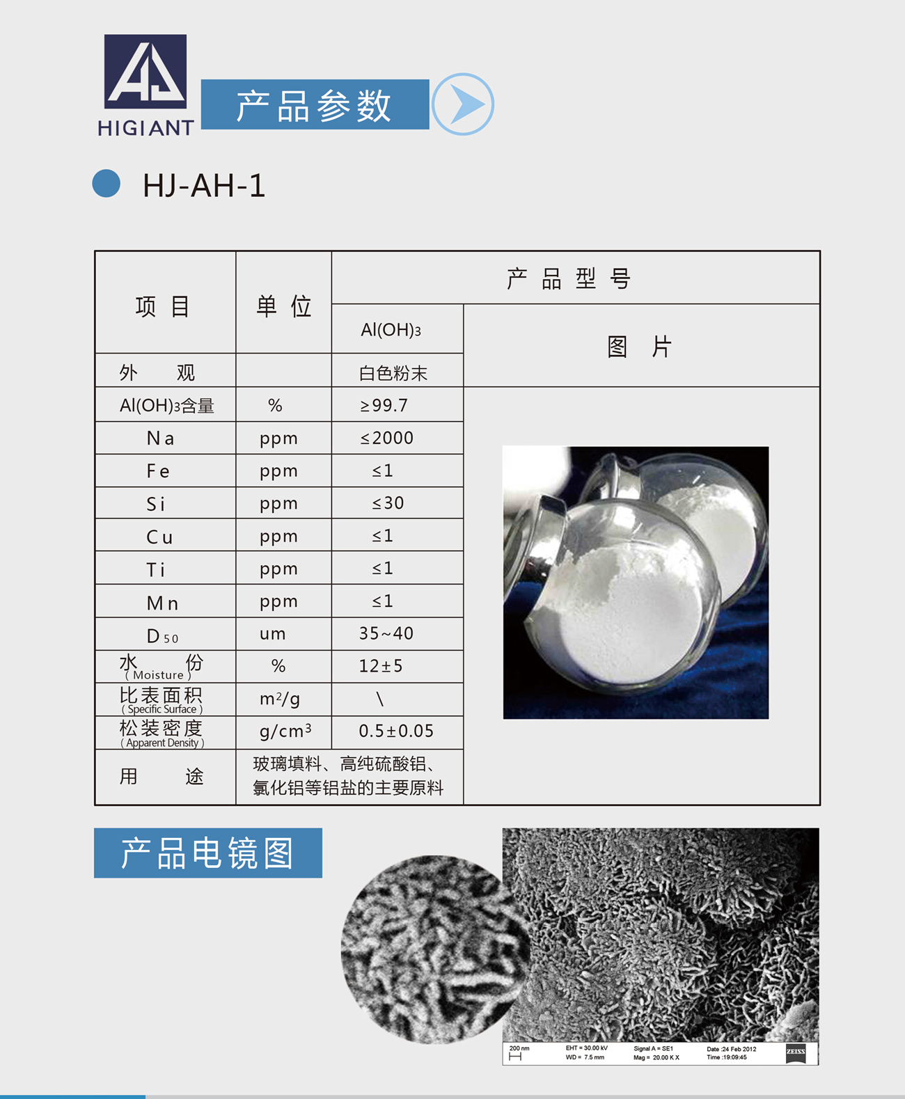 外观为白色粉末,常用于玻璃填料、高纯硫酸铝、氧化铝等铝盐的主要原料